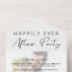 Faire-part de mariage photo élégant pour votre mariage intime ou mariage privé combiné avec une invitation à une réception pour annoncer votre mariage à vos amis et à votre famille et les inviter à une réception ou une fête après le mariage. Votre annonce et invitation personnalisées se superposent à votre photo du jour du mariage, et "Happily Ever After Party" est écrit dans un mélange de typographie simple et d'une écriture moderne. Entrez l'adresse URL de votre site web de mariage pour créer un code QR pour que vos invités répondent en ligne et obtiennent des informations sur l'hébergement, les directions, les éventuelles fêtes de la veille et d'autres détails. Une carte-réponse détachable fournit une réponse pratique et écologique sans enveloppe de la part de vos invités.