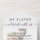 Faire-part de mariage et invitation à la réception de mariage, le tout en un seul carton pour annoncer votre mariage à votre famille et à vos amis et les inviter à une réception ou une fête après le mariage. Votre annonce personnalisée et votre invitation se superposent à votre photo du jour du mariage, et "nous nous sommes mariés, fêtez avec nous" est écrit dans un mélange de typographie simple et d'écriture tendance avec fioritures. Une carte postale RSVP détachable fournit une réponse pratique et écologique sans enveloppe de la part de vos invités.