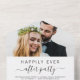 Faire-part de mariage élégant ou annonce de mariage privé avec carte postale RSVP détachable offrant une réponse sans enveloppe pratique de vos invités. Ce design présente votre photo sur le rabat intérieur supérieur, "Fête de Mariage Heureux" dans un mélange de typographie simple et d'un script élégant avec fioritures et vos noms dans un script ressemblant à une signature. La carte RSVP recouvre une deuxième photo.