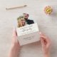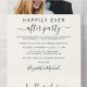 Faire-part de mariage ou d'élopement crème clair élégant combiné avec une invitation à la réception de mariage. Ce design présente votre photo, "Soirée pour toujours heureux" dans un mélange de typographie simple et d'un script stylisé avec des fioritures et une typographie moderne simple. Ajoutez vos noms dans un script ressemblant à une signature. Une carte postale RSVP détachable permet une réponse sans enveloppe de vos invités.