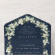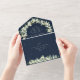 Invitation Tout En Un Réception de mariage Navy Snowberry+Eucalyptus uni