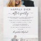 Carton d'invitation à une réception de mariage ou annonce de mariage intime ou privé avec une carte-réponse détachable RSVP qui permet une réponse sans enveloppe de vos invités. Ce design présente votre photo sur le rabat intérieur supérieur, "Soirée pour toujours heureux" dans un mélange de typographie simple et un script élégant avec des fioritures et vos noms dans un script ressemblant à une signature. La carte RSVP se superpose à une seconde photo.