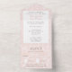 Une invitation de mariage tout-en-un avec détails et cartes RSVP perforées attachées.