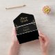 Une invitation personnalisable tout-en-un pour enregistrer la date, l'invitation et la carte de réponse. Parfait pour un mariage sur le thème de Gatsby le Magnifique des années 1920.