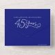 Cette invitation à la fête du 45e anniversaire de mariage comporte un RSVP détachable qui peut être scellé, de sorte qu'aucune enveloppe n'est requise. Le texte de style graphique en bleu foncé indique 45 ans et est souligné avec des invitations de mariage pour le 45e anniversaire de mariage en forme de cœur. Personnalisez avec vos propres détails de fête d'anniversaire de mariage et options de repas de réponse ainsi qu'une photo du couple célébrant l'anniversaire. Facilitez la tâche à vous et à vos invités pour l'envoi, car aucune enveloppe n'est requise : il suffit d'écrire à la main sur vos invitations scellées et vos invités peuvent répondre avec le RSVP détachable pour des réponses rapides et faciles aux repas des invités. Idéal pour un événement d'anniversaire de quarante-cinq ans avec un repas formel. Le quarante-cinquième anniversaire de mariage est associé au saphir et à la couleur