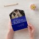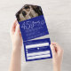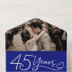 Cette invitation à la fête du 45e anniversaire de mariage comporte un RSVP détachable afin qu'elle puisse être scellée, donc aucune enveloppe n'est requise. Le texte de style graphique en bleu foncé indique 45 ans et est souligné avec des invitations de mariage pour le 45e anniversaire de mariage en forme de cœur. Personnalisez avec vos propres détails de fête d'anniversaire de mariage et options de repas de réponse ainsi qu'une photo du couple célébrant l'anniversaire. Facilitez la tâche à vos invités et à vous-même pour l'envoi, car aucune enveloppe n'est requise : il suffit d'écrire à la main sur vos invitations scellées et vos invités pourront répondre avec le RSVP détachable pour des réponses rapides et faciles concernant les repas. Idéal pour un repas formel à l'occasion de l'anniversaire de quarante-cinq ans. Le quarante-cinquième anniversaire de mariage est associé au saphir et à la couleur bleue