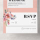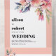 This invitation for the spring wedding showcases a delicate white frame, adorned with a branch of rhododenron with peach-pink flowers. These beautiful blooms are elegantly placed in the top right corner of the invitation and also featured on the tear-off RSVP card, creating a cohesive and charming design. Additionally, peach-pink borders complement the overall aesthetic, adding a touch of natural elegance. The minimalist yet bold typography of the text brings a modern and stylish element to the invitation, making it a perfect choice for a contemporary spring wedding celebration.