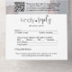 Invitez famille et amis à une célébration de mariage simplement élégante avec des invitations personnalisées "rien de fantaisiste, juste de l'amour" comprenant une photo et un code QR. Le texte de ce modèle est prévu pour une réception après une fugue, mais il est facile de le personnaliser pour tout événement petit ou décontracté, mariage minimaliste ou micro-mariage. Les couleurs, les styles de police et l'opacité de la superposition peuvent être modifiés à l'aide de l'outil de conception Zazzle. Le design moderne minimaliste noir et blanc présente un cœur mignon, une photo du couple nouvellement marié, une calligraphie à l'écriture manuscrite tendance et une typographie classique chic. Ce design permet aux invités de choisir la méthode de réponse qu'ils préfèrent, soit avec la carte postale détachable "réponse aimable" à envoyer par courrier, soit avec le code QR scannable. En scannant le code QR avec leur téléphone, les invités peuvent être dirigés directement vers le site web du mariage pour répondre à l'invitation. Un processus de réponse en ligne réduit les risques de perte de cartes dans le courrier. Il est également possible de demander des informations plus détaillées, telles que les choix de repas, les allergies alimentaires et les demandes de chansons. Que vous ayez fait une fugue ou que vous planifiez un mariage simple, cette invitation est un ajout unique