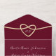 Élevez votre faire-part mariage avec notre élégante invitation tout-en-un bordeaux, alliant minimalisme moderne et sophistication intemporelle. Orné d'un coeur chic de corde dorée contenant les initiales monogrammes de la mariée et du marié, et complété par un script de calligraphie simple. Customisez avec une photo chère du couple au dos, et incluez votre site Web et code QR pour faciliter RSVP et des informations supplémentaires. C'est le parfait mélange de style et de personnalisation pour votre journée spéciale.