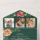Découvrez une romance intemporelle avec cette élégante faire-part de mariage tout-en-un vert émeraude et fleurie. Avec ses fleurs d'aquarelle luxuriantes en rose et pêche, ses accents floraux dorés et son design sophistiqué, cette invitation écologique conviendra parfaitement aux mariages de automne. Le format tout-en-un pratique signifie qu'aucune enveloppe n'est nécessaire, simplement plier, sceller et envoyer. Customisez avec vos photos, texte et détails RSVP pour une célébration magnifique et durable.