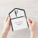 Cette élégante faire-part de mariage en arc noir et blanc est parfaite pour un mariage moderne. Le design simple présente une élégante calligraphie noire et une illustration de mariée et de mariée sur un arrière - plan blanc propre.