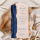 Le bord gauche de cette élégante faire-part de mariage tout-en-un moderne et RSVP est doté d'une bordure en aquarelle bleu marine ornée d'une parties scintillant en or rose. Le texte personnalisable combine écriture manuscrite gris fusain, cuivre et polices italiques sur un arrière - plan rose vif. L'adresse de retour apparaît sur le rabat extérieur et sur le côté arrière de la carte RSVP détachable.