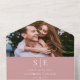 Cette faire-part de mariage tout-en-un minimaliste chic peut être personnalisée avec votre photo spéciale, vos initiales monogrammes et les informations de mariage sur un arrière - plan rose poussiéreux. L'invitation comprend un RSVP perforé avec votre code QR du site Web mariage et des détails. Conçu par Thisisnotme©