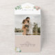 Élégant, moderne, floral rose pâle tout-en-un faire-part de mariage avec coeur de corde or, verdure, roses et image personnalisée du couple à l'arrière. Ajoutez votre photo, les détails du mariage et rsvp.