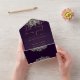 Invitation Tout En Un Rose gothique violet et or QR Code Mariage