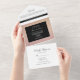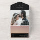 Elégant, moderne, typographie, simple, minimaliste or noir et rose tout-en-un faire-part de mariage avec photo personnalisée du couple à l'arrière. Ajoutez votre photo, les détails du mariage et rsvp.