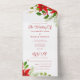 Invitation Tout En Un Rouge clair Vert Noël Poinsettia Mariage