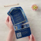 Invitation Tout En Un Royal Blue Gold Abstrait Fluid Ink QR Code Mariage