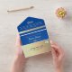 Simples, modernes, élégantes, couleurs bijoux faire-part de mariage bleu royal avec coeur de corde or et image du couple. Ajoutez votre photo, les détails du mariage et rsvp.
