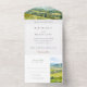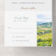 Découvrez le charme de la campagne viticole avec notre "Vineyard Splendor All-in-One Faire-part de mariage", qui présente une captivante aquarelle représentant les vignobles luxuriants de la Napa Valley. Le sommet de l'invitation présente un paysage époustouflant avec une tapisserie de verts riches, de jaunes vibrants et de violets doux, symbolisant les rangées de vignes nichées entre des collines ondulantes sous un ciel clair. Cette invitation se déroule avec élégance pour révéler les détails de votre journée spéciale dans un script raffiné, contrasté avec un arrière - plan blanc immaculé. Le design intelligent comprend une carte RSVP détachée en bas, ce qui permet à vos invités de répondre facilement. Conçu avec soin, cette invitation tout-en-un allie fonctionnalité et élégance naturelle du pays viticole de Napa, assurant un prélude gracieux à votre jour de mariage.