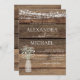 Rustic Farmhouse String Lights et Jar of Baby's Breath Wedding Invitations on Wood arrière - plan - comprend une belle et élégante typographie de script avec la ferme Country Farm House Sparkle moderne pour la célébration spéciale de mariage.