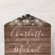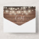 Le tout dans un seul faire-part de mariage, de jolies lampes à cordes, des jarres de maçon, des noms de style signature et une typographie chic sur un arrière - plan rustique en bois. L'invitation comprend une carte RSVP perforée qui peut être adressée individuellement ou laissée vide pour que vous puissiez écrire à la main les coordonnées de votre invité. Conçu par Thisisnotme©