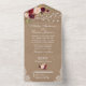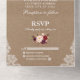 Mariage Rustique, aquarelle Bourgogne Floral, Lights à cordes et Mariage de dentelle Kraft All In One Invitation avec carte RSVP inclut des roses bordeaux, roses roses roses roses, roses rouges et verdure botanique.
