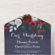 Bouquet floral d'hiver rouge bordeaux et blanc avec branches de sapin vert foncé et feuillage saisonnier sur un arrière - plan de tableau noir bleu marine de minuit faisant un charmant budget rustique phoque abordable et envoyer le modèle avec carte RSVP inclus. +++++++++++++++++++ L'invitation est idéale pour les mariages de style traditionnel de Noël à fleurs d'hiver.