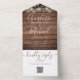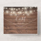 Le tout dans une seule faire-part de mariage avec de jolies lampes à cordes, des noms de style signature et une typographie chic sur un arrière - plan rustique en bois. L'invitation comprend une carte RSVP perforée avec un code QR. Conçu par Thisisnotme©