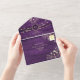 Célébrez votre amour avec un mélange exquis d'élégance moderne et de bohème vintage pays. Notre faire-part de mariage tout-en-un en or rose et en bois de grange est doté d'une dentelle florale dorée complexe, avec des détails RSVP et un lien personnalisé du site Web mariage. Votre monogramme est à la hauteur, ajoutant une touche de charme sur mesure. Chaque invitation est adressée à la main sur le dos, assurant une touche vraiment personnelle pour votre journée spéciale.