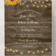 Célébrez votre grande journée avec ce faire-part de mariage rustique tout-en-un avec des tournesols aquarellés, des pivoines bordeaux, des lampes à cordes et un arrière - plan en bois de grange foncé. Ce design pratique comprend une carte RSVP détachable et un format prêt à l'enveloppe, ce qui le rend à la fois élégant et pratique. Parfait pour les mariages d'automne, de campagne, de grange ou d'extérieur, entièrement personnalisable avec vos détails.