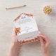 Découvrez la beauté de la chute avec cette faire-part de mariage tout-en-un aux teintes chaudes en terre cuite et aux accents floraux rustiques. Parfait pour une fête d’automne, cette invitation présente un mélange de tons de terre et d’aquarelles complexes qui évoquent le charme de la saison. Le format tout-en-un pratique permet d'inclure facilement tous les détails mariages essentiels dans un ensemble élégant. Idéal pour les couples qui aiment une esthétique naturelle et cosy, ce design donne le ton d'une journée de mariage chaleureuse et mémorable.