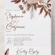 Ce design présente des bouquets boho de bronze, brun, crème et doux rougissement. Les invitations tout-en-un personnalisées sont une combinaison unique d'une invitation personnalisée magnifiquement imprimée et d'une carte postale RSVP perforée facile à déchirer. Et ils sont si faciles à utiliser ! Il suffit de plier, puis de sceller le rabat arrière avec les trois autocollants clairs inclus, et le courrier. Et quand vos invités reçoivent votre invitation personnalisé, ils déchirent la carte RSVP perforée et vous la remettent dans le courrier !