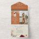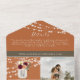 Célébrez votre histoire d'amour avec notre élégante faire-part de mariage tout en un d'inspiration automne, conçue pour capturer la beauté de la romance contemporaine. Cette magnifique invitation présente une riche palette d'orange brûlée et bordeaux, magnifiquement accentuée avec des fleurs d'aquarelle de saumons en bocal de mason, une délicate herbe de pampas, et la lumière chaude et romantique des lumières à cordes. Un monogramme personnalisé ajoute une touche de sophistication, tandis que deux photos chères du couple créent un véritable souvenir de coeur. Parfait pour les mariages d'automne, cette invitation allie charme rustique et élégance moderne. Ajoutez simplement vos photos, les détails du mariage et les informations RSVP pour une touche personnalisée qui reflète votre style unique. Important : Cette invitation tout-en-un écologique exige une enveloppe distincte pour l'envoi.