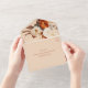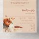 Des illustrations romantiques et modernes d'aquarelle de bouquets de fleurs en ivoire et orange brûlé, avec roses et pivoines, de verdure et d'herbe sèche, de pampas et d'autres feuillages boho, sur un arrière - plan crème et pêche, illuminé par de douces lampes à cordes stylisées, décorent cette chute rustique tout en un faire-part de mariage avec un thème boho floral vert verdure. Une invitation élégante et moderne pour une grange rustique, une ferme, un pays, un lac ou un mariage de jardin, c'est le faire-part de mariage triplé parfait qui comprend la carte RSVP. Simplement plier, sceller et envoyer. Pour les mariées qui aiment l'esthétique rustique de la grange, le thème boho, les couleurs orange brûlée, rouille et terre cuite.
