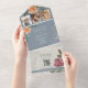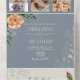 Créez une expérience mariage inoubliable avec cette faire-part de mariage tout-en-un rose pêche à la pêche à la chair florale rustique et bleu poussiéreux. Présentant d'élégantes illustrations florales, cette invitation combine magnifiquement des tons pastel doux et un design rustique charmant. Le design comprend de l'espace pour trois photos, ce qui en fait une façon parfaite de partager votre histoire d'amour. Le format tout-en-un est pratique, mais veuillez noter que cette invitation nécessite une enveloppe supplémentaire pour l'envoi. Complet avec un code QR pour un RSVP facile et un texte personnalisable, il est parfait pour un jardin romantique ou mariage d'inspiration vintage.