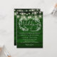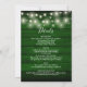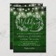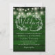 Un faire-part de mariage rustique avec de jolies lampes à cordes et une délicate guirlande florale rustique dessinée à la main, de feuillage botanique et typographie stylisée sur un arrière - plan de bois rustique vert émeraude. Personnalisez avec toutes vos informations spéciales sur le jour de mariage au verso, y compris votre RSVP, l'hébergement et des détails supplémentaires. Conçu par Thisisnotme©