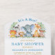 Invitation Tout En Un Safari Animaux Baby shower bleu et Raffle Gold