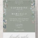 Le tout dans un faire-part de mariage avec une belle cascade de verdure fleurie, une typographie élégante, et des initiales monogrammes sur un arrière - plan vert sage. L'invitation comprend une carte RSVP perforée avec votre code QR du site Web mariage et des détails. Conçu par Thisisnotme©