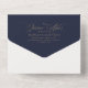 Une élégante invitation de quinceañera en bleu marine et or, avec une formulation traditionnelle avec un élégant en-tête de typographie de calligraphie. Cette invitation tout-en-un durable vous ferait économiser de l'argent, pas besoin d'inclure des enveloppes RSVP, vos invités déchireront le panneau dernier et vous le renvoyer comme carte postale. Si vous avez besoin de changements, je suis heureux d'aider Necesita ayuda en español? Feliz de ayudar