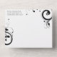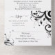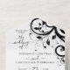 Invitation tout-en-un unique avec carte rsvp déchirante. Invitations de mariage festives et fantaisistes en noir et blanc. Des tourbillons décoratifs avec feuille et rose, et de belles polices avec ligatures tourbillonnantes. Faire-part de mariage simple, moderne et classique propre, avec vos détails de mariage personnalisés.