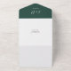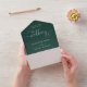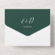 Tout en un carton d'invitation de mariage vert émeraude élégant avec une typographie script hearts et des initiales monogrammées. L'invitation comprend une carte RSVP perforée avec votre code QR de mariage personnalisé. Conçu par Thisisnotme