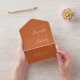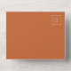 Cette simple faire-part de mariage tout-en-un moderne présente du texte blanc sur un arrière - plan orange brûlé. Ajoutez les noms de la mariée et du marié en calligraphie stylisée et les détails en police sans serif. Ajoutez votre adresse de retour en blanc sur le rabat extérieur orange brûlé et sur le dos du RSVP amovible.