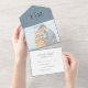 Invitation Tout En Un Simple Calligraphie Photo Dusty Blue RSVP Mariage