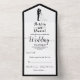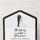 Cette élégante faire-part de mariage en arc noir et blanc est parfaite pour un mariage moderne. Le design simple présente une élégante calligraphie noire et une illustration de mariée et de mariée sur un arrière - plan blanc propre.