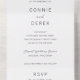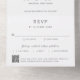 Elegant all in one wedding invitation featuring a simple design with a modern sans serif font and an elegant script font. The attached RSVP card has meal choices for your guests and a qr code for your wedding website. The QR code may be removed in the design editing tool.