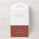 Invitation de mariage moderne avec vos initiales de monogramme, noms et détails de mariage dans un script blanc simple avec un fond rouille. L'invitation de mariage tout-en-un rouille comprend une carte postale de réponse.