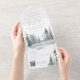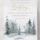Slate Winter Paysage Woodland Mariage QR Code All in One Invitation. Cette invitation minimaliste à un mariage hivernal présente un magnifique paysage hivernal peint à la main avec des pins dans les tons gris et bleu ardoise. Abstrait rustique invitation de mariage d'hiver moderne. Cet élégant mariage en bois tout en une invitation est conçu avec une carte postale RSVP perforée facile à déchirer avec un code QR. Plier simplement la carte, sceller et envoyer (pas d'enveloppe nécessaire). Vous pouvez personnaliser le libellé, le style de police, la couleur et la taille devant et derrière l'invitation. N'hésitez pas à me contacter pour les articles correspondants.