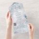 Invitation de mariage d'hiver tout-en-un avec typographie élégante. L'invitation comprend une carte RSVP perforée avec votre code QR du site Web mariage et des détails. Conçu par Thisisnotme©