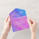 Immergez-vous dans la transition harmonieuse du violet Passionné, rose ludique, bleu serein, et aqua rafraîchissant. Vivez la danse fascinante des émotions à travers l'interaction des couleurs ! Tout cela en une seule invitation a tout ce dont vous avez besoin ! Trouvez d'autres produits dans notre collection pour une soirée de mariage à thème parfaite, une soirée de bachelorette et des produits de fête de mariage !